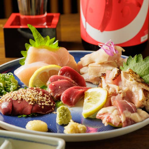 天満駅から徒歩5分の好立地に位置する、大人の隠れ家的居酒屋 『地どり焼 でんえん』。新鮮な朝挽き鶏を使用した鶏料理が自慢で、【鶏焼き・鍋・お造り】を中心に、鶏の全てを堪能できるメニューを豊富にご用意しています。特に、「お造り」は希少部位を含む複数の部位を楽しめるため、鶏本来の旨味を存分に味わえるのが魅力!また、炭火でじっくり焼き上げる「鶏焼き」や、旨味たっぷ...
